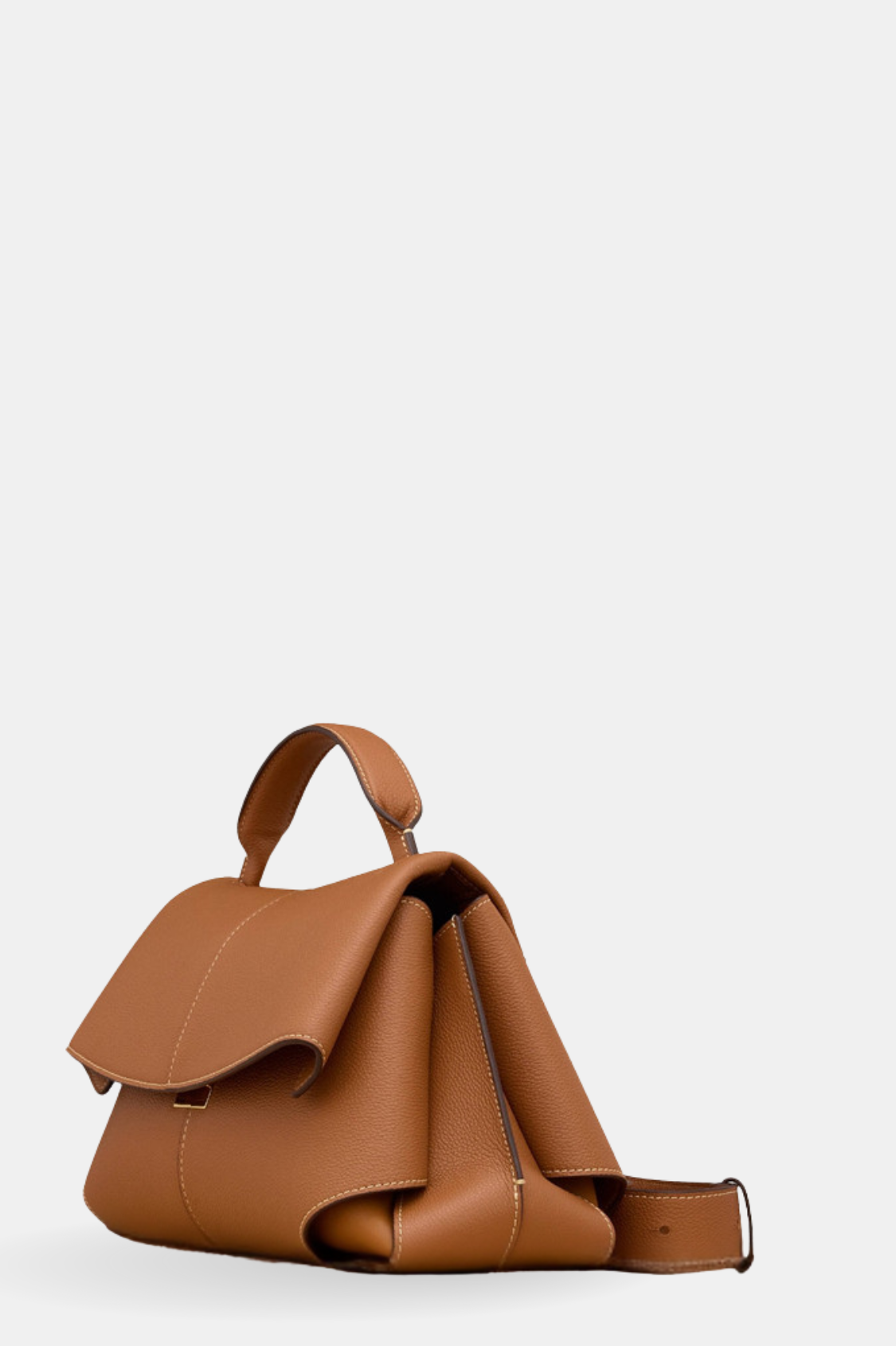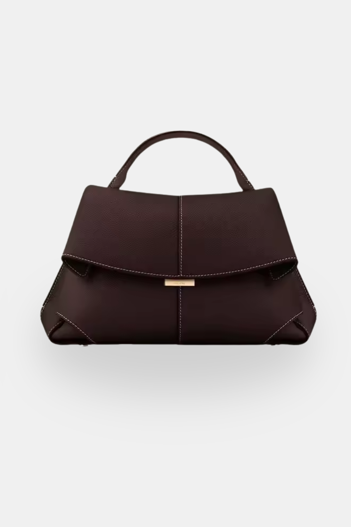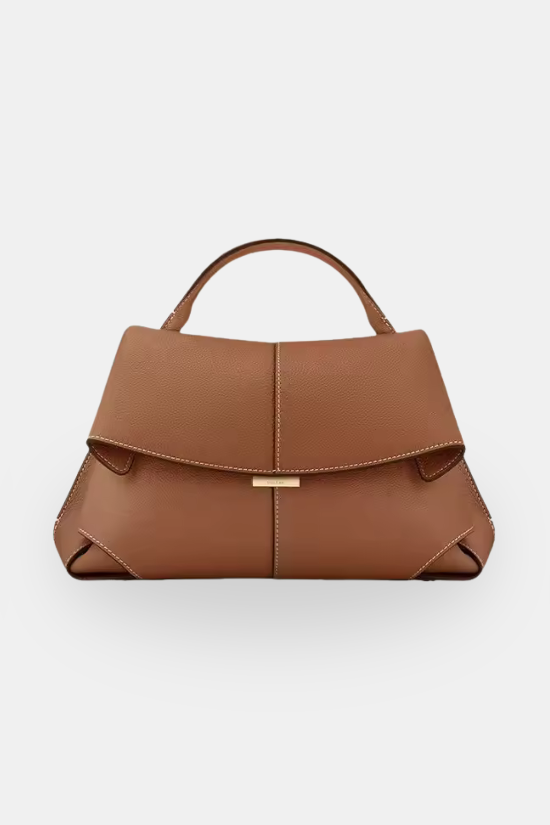 A modern top-handle handbag designed to embody architectural elegance and refined sophistication. Its sculpted silhouette and clean lines create a statement accessory suited for elevated everyday wear and polished occasions.